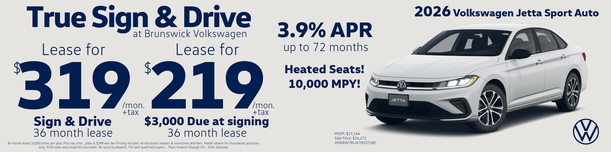 Experience precision engineering and modern design with the Volkswagen Jetta, now available with exclusive lease specials at Brunswick Volkswagen. Serving Brunswick, Medina, Cleveland, and Akron, Ohio, our dealership offers competitive Volkswagen Jetta lease deals that make driving this iconic sedan more affordable than ever. With advanced safety features, impressive fuel efficiency, and cutting-edge technology, the Jetta delivers everything you need for everyday comfort and confidence. Browse our Volkswagen lease specials and discover why so many Ohio drivers trust Brunswick Volkswagen for their next new Jetta.